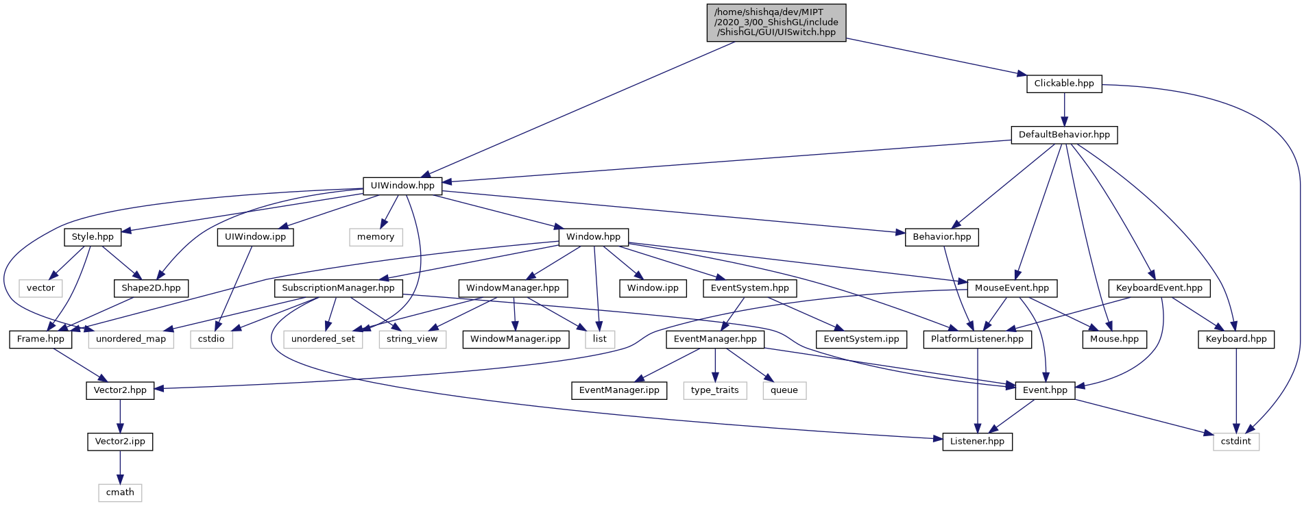 Include dependency graph for UISwitch.hpp: